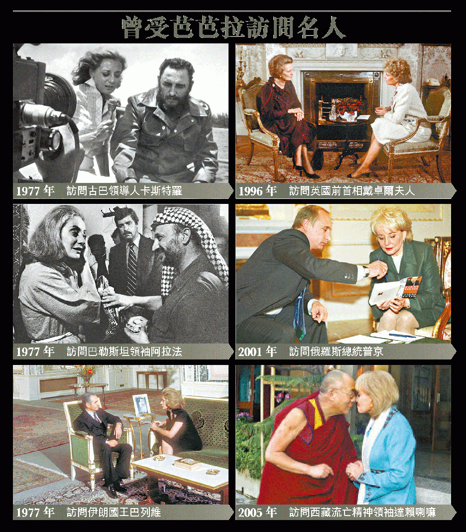 ‧「我入行時芭芭拉已是行內佔重要席位的唯一女新聞工作者。我們各為其主,但若她認為我做了一個不錯的訪問,會致電或留字條給我。她活力充沛,總是做出好節目。我緊隨她的步伐。」