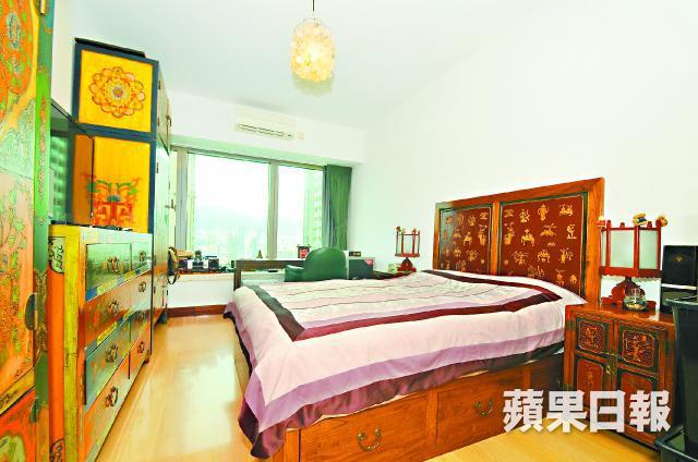 單位以一層一戶設計,擁有獨立電梯大堂,提高私隱度,更顯矜貴。客飯廳呈長形,3個睡房位於大廳兩端,走廊位少,空間實用。客廳向北,設有落地玻璃連露台,遠望獅子山景。業主鍾情中國古董傢俬,特意搜羅的明清傢俬,古色古香,闊落的主人套房可擺下大型的雕花高身古董衣櫃,雙人床更刻有不少手工精細的圖案,窗前的一條原木,價值不菲,戶主只用作書枱,盡顯品味。