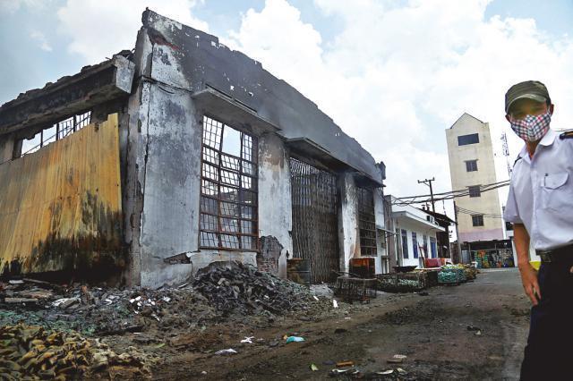 【本報訊】越南日前發生反華示威演變成騷亂後,中國外交部昨證實至少有兩名中方人員死亡、過百人受傷。當地民間醞釀明日發動新一輪全國反華行動,令在越的中港台商人和員工人心惶惶,今明將避免外出。《蘋果》記者昨日在騷亂重災區平陽省順安縣神浪工業園區所見,被暴徒打砸搶燒後的廠區餘煙未消(圖),一片狼藉。當地華人指首波反華示威疑有便衣軍人背後參與,並有機構派錢發動反華示威。而香港旅遊業議會昨決定即時取消去越南的旅行團至本月26日,涉及45團合共1,000人。