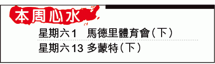 同日尚有兩場盃賽,德國盃方面,見到多蒙特在季尾一戰似已洞悉拜仁虛實,搶截踢法令拜仁的攻勢只能隔靴搔癢,中立場受讓半/一同樣要下盤;另一場阿仙奴應能輕勝,雲格領軍已9年無冠,決心極大,但英足盃始終是爆冷溫床,就如阿仙奴在4強面對韋根,也要踢足120分鐘,去到互射12碼才取勝,今次單W僅1.37倍,賠率乏味不值得投注。文:仙道彬