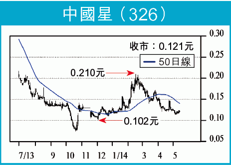 中國星已於去年開始介入澳門賭業而盈利得以有76%增長,預期今年因全面專注而取得更驕人成績。現價的中國星PE僅4.9倍、PB 0.49倍,相對其他濠賭股2014年預測PE 16倍,折讓甚大,而本身股價已由2月高位0.21元回落至0.114元,累跌0.096元或46%,若已見底,技術反彈可先試0.173元,已較現價0.121元,有43%升幅。以預測PE 10倍為目標(較平均PE 16倍折讓38%),即使盈利零增長,股價可見0.24元,升幅達97%!