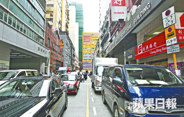 觀塘工業區車位供不應求,記者日前現場視察多條主要街道,包括興業街、鴻圖道及駿業街等,明明多線行車,卻總有一至兩條行車線被私家車和貨車違例停泊。走到興業街,一架在行人路違泊的私家車,被旁邊價值數百萬元的林寶堅尼堵住退路,車主見名車留有手機號碼,急Call業主讓路,原來車主就在對面麥記開餐,見狀上前,即駛開跑車。