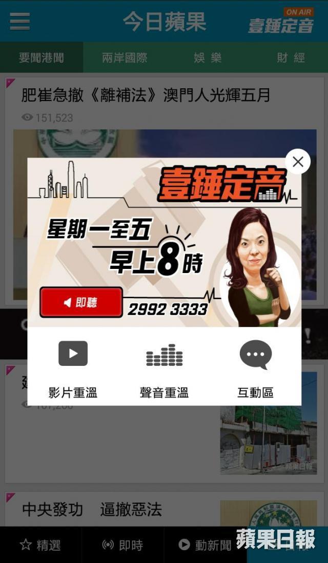 逢星期一至五早上8時,見到「on air」標誌再按即聽,更可以一邊聽直播、一邊看其他新聞。即使收起App都可以繼續聽,隨時選擇播放或者停止。