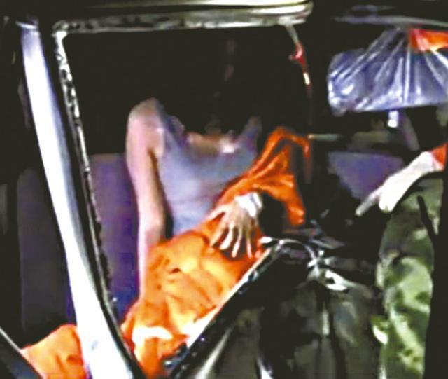 浙江溫州一男兩女疑在停在路邊的一輛小貨車上大玩車震,其間有人不小心觸碰手掣,小貨車溜後撞向大樹,男的只穿內褲、女的穿睡衣,而另一裸女被困車內,腿部流血痛得尖叫,事後她穿上背心(圖)由消防員救出送院。浙江溫州網