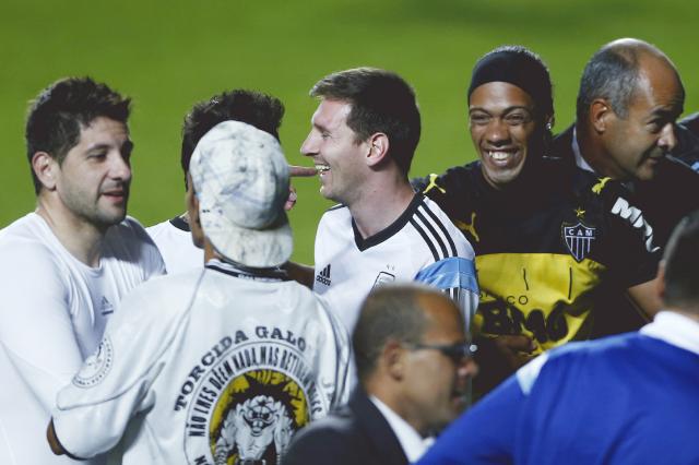下個禮拜日會喺F組分組賽對波斯尼亞嘅阿根廷,禮拜三進行咗課夜練,但有神秘嘉賓嚟踩場。美斯同隊友練練吓波嘅時候,有十幾個球迷衝入場,其中一個紅色底白橫間Tee嘅男粉絲仲走到美斯面前,跪低幫佢擦波砵;而美斯亦好玩得,用右手摸番個粉絲個頭,之後仲同佢嚟個深情擁抱,兼且除咗件練習衫送埋畀佢㖭。