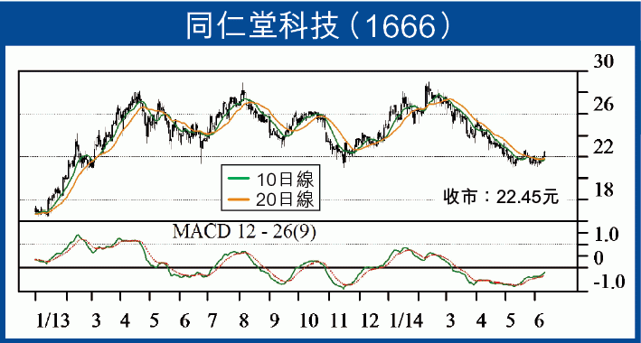 個別藥業股昨日有不俗表現,但該板塊股份質素參差,要搵基本因素佳及技術走勢靚的藥股,同仁堂科技(1666)肯定有份,該股昨日逆市升2%,收報22.45元,成交88萬股,不妨落注等突破。