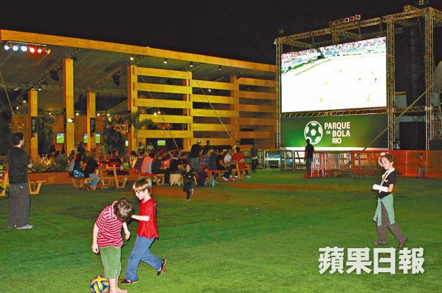 位於馬場內的足球公園,顧名思義就是一個以足球為主題的公園,讓球迷投入世界盃熱潮。場內有兩個大型電視兼一片人工草地,大人們聚精會神地睇波時,小朋友則在草地開波,樂此不疲。這裏的氣氛當然不及位於Copacabana海灘的FIFA Fan Fest,但若然不想擠迫的話,這裏也是個不錯選擇,像周一美國對加納的戲碼雖不算太強,現場也有不少球迷在場欣賞。