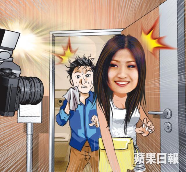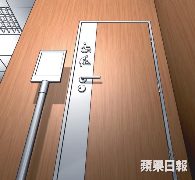 開鎖打開廁格,Coffee先行步出,男友則「動L」跟隨其後,見他頭髮和臉龐也濕透,衫褲也有水迹。