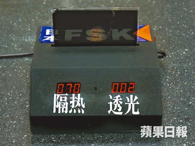 即場測試隔熱膜的透光度與紅外線的阻隔比率。圖中隔熱數字為16的,即可阻擋84%紅外線。