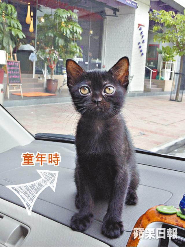 十多年前Phebe(右)養了黑色長毛家貓妹妹(圖),見其毛色發亮雙目有神,帶牠去比賽竟贏得獎項。 愛貓去世,Phebe懷念黑貓的美,對雜誌上的孟買貓一見傾心。終於2008年找到美國孟買貓繁殖者Caricature Cattery-Sharyn & Sig Hauck及Star Academy Cattery-Isabelle Ruyssers,親自赴美迎接剛出世不久的一雄一雌小孟買貓。
