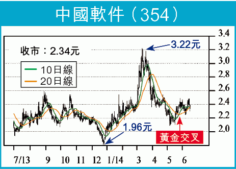 中軟5月底出現黃金交叉後,10日線仍穩定於20日線之上,MACD更保持雙牛狀態,現時仍處3至5月調低後的回升過程中。