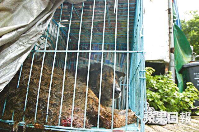 昨早10時許,警方接報入村調查,並通知愛護動物協會人員協助,在村民協助下,合力將肥仔捉入鐵籠內。肥仔身處鐵籠期間,尾巴傷口仍在滴血,牠一度嗚嗚聲發出哀鳴。肥仔其後由愛協人員帶走治療。