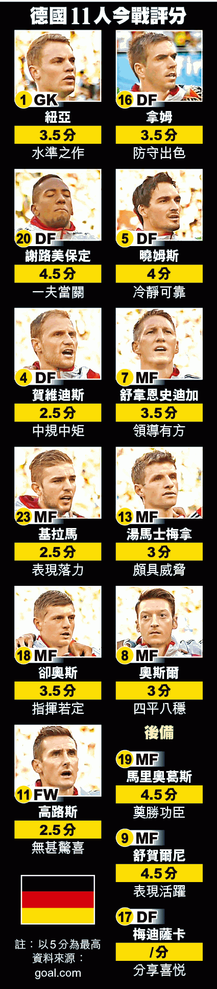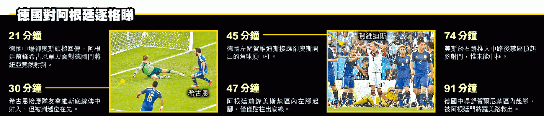 德國在周日的世界盃決賽創歷史,戰至加時,憑着後備入替的馬里奧葛斯於113分鐘射入靚波,以1:0擊敗阿根廷,第4度高舉世界盃之餘,更打破宿命,成為首支在南美洲封王的歐洲球隊。德國以大力神盃,證明了整體足球才是王道。