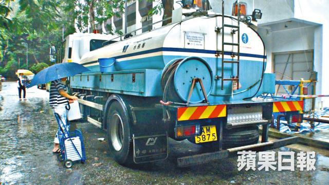昨晨沙田大圍區一度落起大雨,有居民一覺醒來發現沒有食水供應,隨即要到樓下水車冒雨取水,顯得狼狽。傍晚時分,逾百名名城居民不滿仍要排隊取水,一度鼓譟。