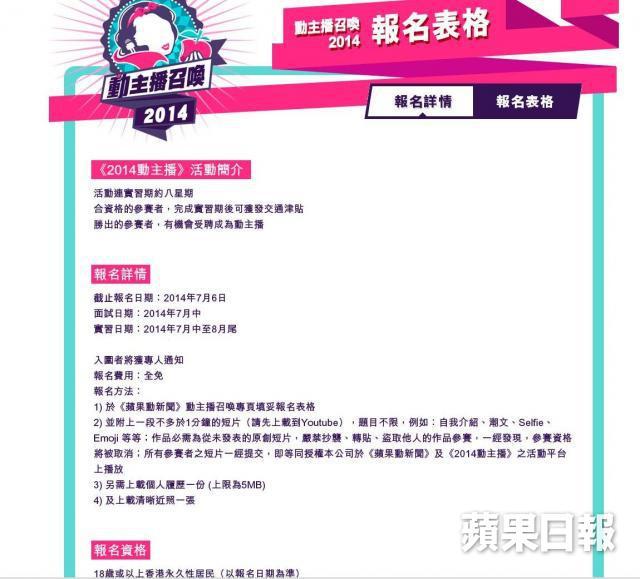報名網址: http://anchor2014.appledaily.com
