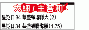 至於「主客和」方面,華盛頓聯隊於人腳及實力上,均較在西岸排中下游的芝華士好,而且近3次迎戰芝華士,華盛頓共取得2勝1和,故今役可以稍為看好。