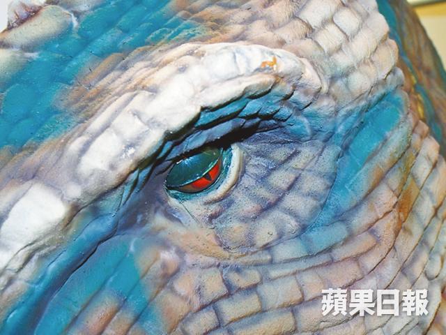 老實說,看着背後突然有隻暴龍近在咫尺,大腦馬上有半秒短路了!震懾之處是它的真實感非常高,We Kids董事總經理黃兆強說:「這只小暴龍,是我們用了年半時間不斷改良,製作物料主要是用鋼架支撐起面層的矽膠,基本上一個mascot(吉祥物)演員已可完全控制走動及頭部動作;以矽膠製作的表皮,可造出極生動的表皮裂紋,豐富整體質感,上色方面更請來香港的專業道具製作人代工,務求做到最像真。」