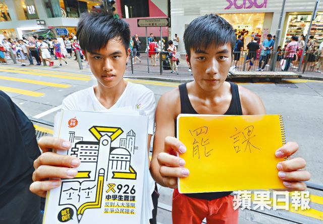 【本報訊】作為學界焦點學生,罷課怎能沒有名校生。拔萃女書院中四生呂同學曾是沉默網民,只會轉發政改訊息,早前在網上發表關於罷課的文章引來極大迴響,明白出一分力可引來注意,即使孤單一人罷課也參與;拔萃男書院也有兩名高中生響應罷課,中四的李同學指這是爭取享有普選權利的義務。