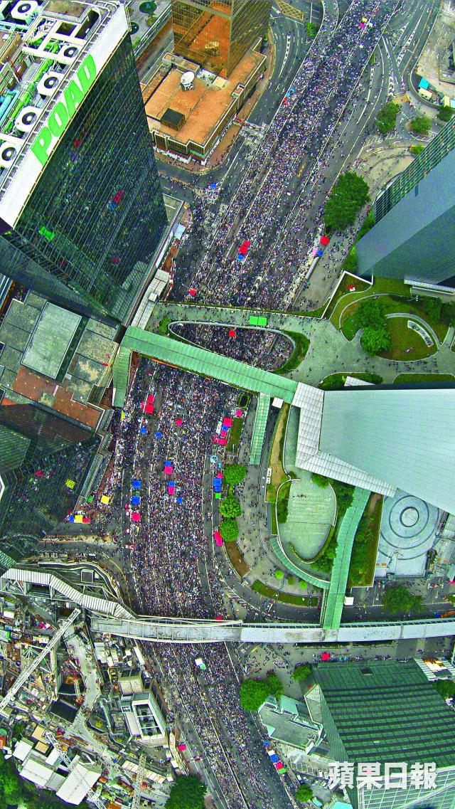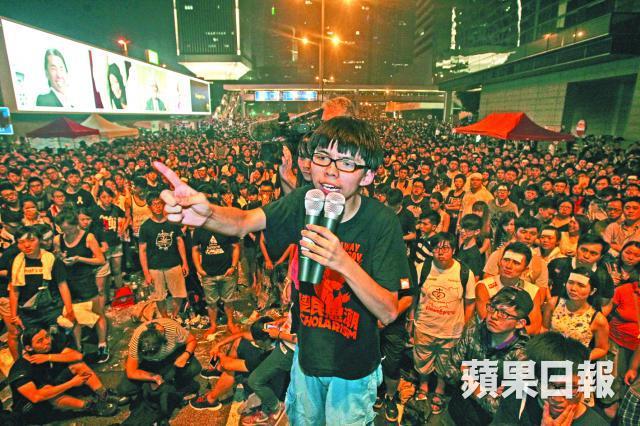 【本報訊】「雨傘革命」第三日,數以萬計市民昨夜無懼雷雨重返金鐘。近20萬人聚在金鐘、中環、銅鑼灣及旺角的「民主大廣場」,越夜越多人,東起銅鑼灣,西至中環畢打街都是人潮。雖然集會市民情緒高漲,但保持和平理性,守望相助,有學生設立物資站,更主動抹去警察總部外的塗鴉。集會人士當中,有學生被催淚彈轟炸出來、有家長帶子女來講解學生運動、也有經歷六七暴動的長者要一直撐至真普選出現。