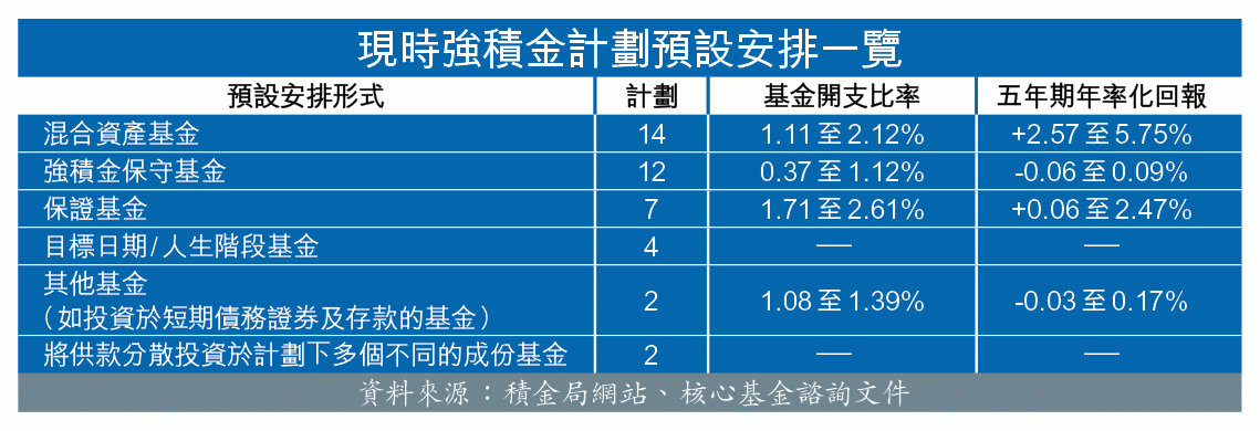 現時每個積金計劃均設有預設安排,主要作用是讓無投資選擇的打工仔有一定的回報,不過,該基金其實是開放予所有打工仔,故其他計劃成員亦可主動投資該基金。
