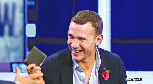 「扒手,我以前都做過……」電視宣傳片嘅對白竟然出自舒夫真高(圖)口中。呢位38歲一代射手日前上足球節目做嘉賓,俾主持摷番段陳年「罪證」,見到當年踢緊基輔戴拿模嘅佢行埋記者身邊,從後懶friend咁左手箍一箍頸,右手就喺後袋扒咗個銀包,等訪問完先交番出嚟。舒夫真高輕描淡寫咁話喺烏克蘭長大梗要學番一招半式,仲即席拎埋隔籬位個銀包出嚟㖭。各位球迷第日有幸遇到佢,無論合照定攞簽名都要小心扒手呀!