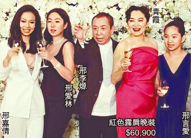 在派對盡興的青霞,玩到凌晨2時多才離開,她臨上車前風騷高舉花束,一邊來個女神甫士,一邊說:「多謝,多謝,辛苦晒你哋等到咁夜。」青霞全晚換了四套長裙,一律是法國名牌Lanvin初秋及秋冬系列的晚裝,總值超過15萬,款式全是鬆緊有度表現身材曲線的款式,而她選擇的鮮紅、翠綠及離開時身穿的金色上衣和長裙,分別洋溢從容、氣派的女人味。