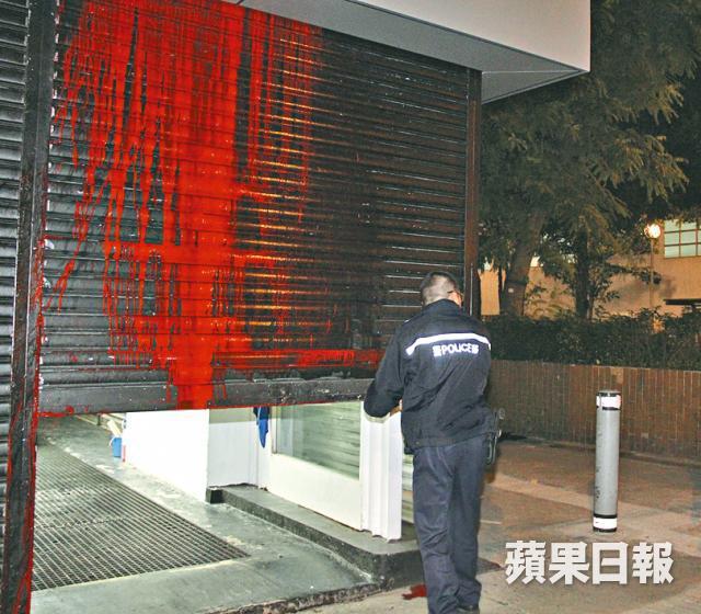 【本報訊】洗車屋變「紅屋」!九龍灣宏泰道一間汽車美容公司,昨凌晨被歹徒淋潑紅油刑毀,鐵閘驟變血紅一片(圖),門前亦撒滿溪錢。洗車屋負責人事後到場助查,向警方表示與人無仇無怨,不明歹徒動機,警方正調查案件性質,暫無人被捕。