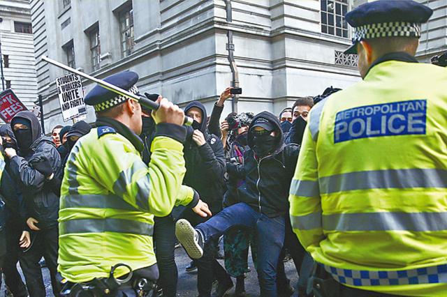 英國倫敦市中心前日(周三)約有10,000學生上街,抗議大專學費連年加價,跟防暴警察爆發衝突。有蒙面激進派示威者燃點火炬及煙霧彈,向警方投擲雜物,甚至試圖衝擊執政保守黨總部。事件中11人因襲警、毆鬥等罪名被捕。
