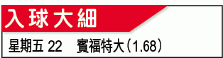 今屆英冠升班馬之一的賓福特表現令人驚喜,在周五的聯賽迎戰有一對射手回勇的富咸,入球「大」是不二之選。(球賽編號:星期五22;無綫網絡電視301台明日3:45am直播)