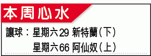 國際賽後,英超又到,波迷卻要小心強隊如拜仁、曼聯及利物浦等受FIFA病毒侵襲的強隊,在主力缺陣下表現大打折扣。今周重心為黑貓新特蘭,其主力前鋒史提芬費查雖為蘇格蘭鬥愛爾蘭的比賽中傷出,但黑貓領隊普耶卻有信心此子能無恙披甲,今作客近4場英超俱未能入波的李斯特城,受讓坐和望贏;另一心水則是本輪的重頭戲阿仙奴對曼聯,信兵工廠可藉主場之利,擊敗傷兵滿營的紅魔。