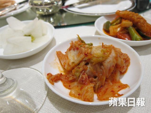 韓國泡菜爽脆微辣,把牛肉的油膩也消掉。