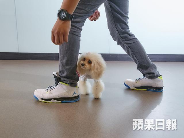 香港犬隻訓練總會訓練員Hugo,今天會教大家狗狗跨越大髀下,在眼水平線,不要太高,引導小狗穿過,繞到我們膝蓋前獎一口零食。起初是穿一次就獎食物,再連續開始兩次,小狗因為對穿越有恐懼,與主人間近身的動作可增加牠對主人的信任,同提升牠的自信心。