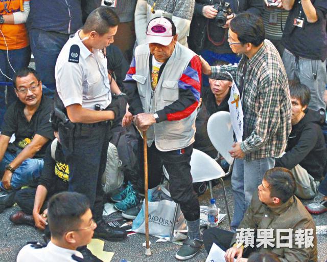 抗命者昨正式按和平佔中「劇本」,堵路後「坐低等拉」。和平佔中倡議人陳健民稱,由於三子已自首,昨天「唔做重複嘢」。他全程透過電視直播觀看清場過程,由於示威者相當和平,故警察無藉口使用暴力。