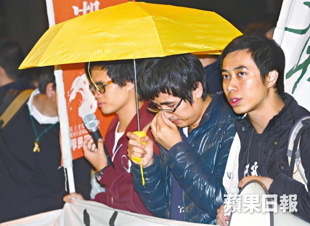 【本報訊】警方在金鐘佔領區完成「終極清場」,徒手撕破黃傘,斗車鏟走敗瓦。209個和平抗命者留守廣場,接受被捕。學聯秘書長周永康在清場尾聲站起來,撐起黃傘,聽着戰友清唱《撐起雨傘》,他哭着等待警察拘捕,為雨傘運動畫上逗號。傘下人們跌過傷過,帶着倔強暫別佔領區,臨行前在路障遺下標語「It's just the beginning」,誓言他朝必定捲土重來。