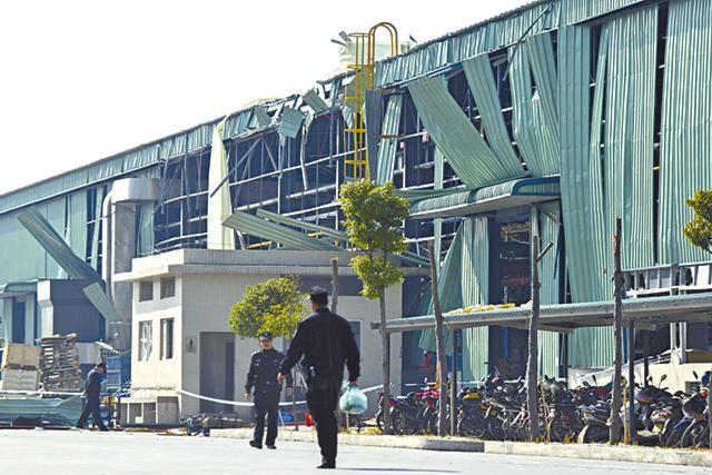 出事是位於順德勒流鎮港口路中段的富華機械廠。昨是年末最後一天,該廠停產放假,部份工人們回廠清理車間,準備迎接新年,豈料遇難。《蘋果》記者抵現場所見,出事車間被警戒線圍起,多名保安人員在執勤,但可見出事廠房金屬鋁板做的兩側圍牆及屋頂被大面積毀壞、穿出大洞;警戒線外多處地面血迹斑斑,還留有鞋子、襪子等物品,殘垣敗壁,一片狼藉。