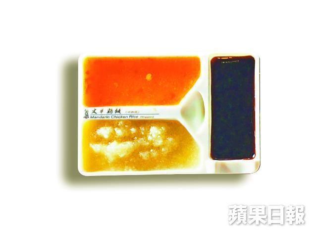 配雞飯的三色蘸料,有薑茸、辣椒醬及黑豉油,全是店內自家製。薑茸近似廣東人的白切雞蘸料,只是沒加葱花;黑豉油則像濃稠烏黑的老抽,其香味及甜味乃來自馬六甲椰糖,可惜店主拒絕透露其具體配方。謝嫣薇又提醒,別小看跟餐奉上的雞湯,因用雞骨及椰菜熬製,味道清淡,星馬人一般會在飯後飲用,可有助中和醬料鹹味,作一餐完美的總結。