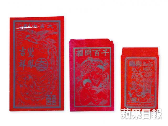 據資料顯示,中國的紅包概念最早出現在三百年前,至一九○○年開始出現印刷利是封。劉銓登的利是收藏中,年份最早的收藏是他曾祖母遺下民國期間的紅封,那是用木板印刷,紅紙上印有金色線條版畫利是封,但隨年月洗滌,封上的金已脫色,只剩下不同吉祥圖案的線條,但仍彌足珍貴,「這類紅封昔日在香燭紙紮店才可找到,老人家才會購買,紅紙像昔日姑娘們的口紅差不多,所以放在口袋裏會脫色,全手染紅。其實昔日長輩就是用紅紙包着零錢給小孩,後來才演變成利是封。」另一批有濃厚中國民間過年特色的紅封,是劉銓登搜購自內地不同地區,多是穿着長衫馬褂的小孩互相祝賀,背景多見賀年年花和吉祥物,是傳統還是老土,見仁見智。
