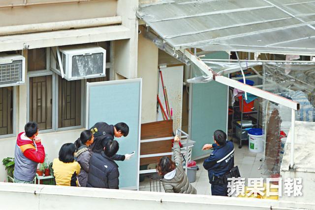 昨凌晨四時五十分,白女疑從上址單位墮下,壓毀大廈四樓一個膠簷篷,倒卧平台上不省人事。有居民乍聞巨響懷疑有人墮樓,通知保安員報警。消防員架起雲梯到達平台,將白女救起;送院搶救後,延至清晨五時五十分證實死亡。