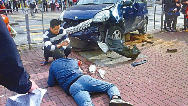 被撞傷姓麥途人被撞後倒在地上,外賣食品散落一地,他趴在地上感到胸痛不敢亂動,但仍掏出手機致電向家人報平安。肇事司機亦相當緊張,即下車上前查看傷其者傷況及加以安慰。