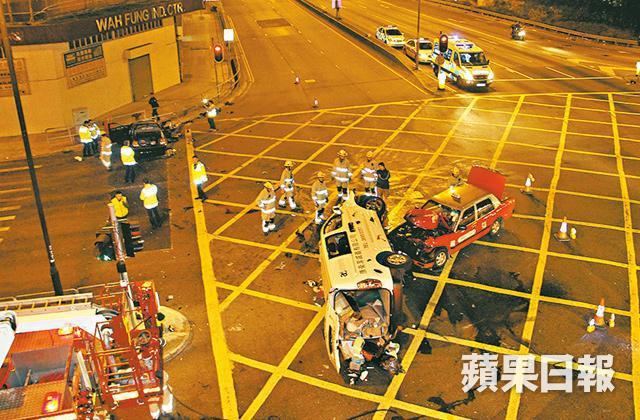 房車衝前約十米後停在路邊,車頭嚴重損毀,司機及女乘客受傷被困,由消防員救出,連同客貨車司機,的士女乘客一併送院;而的士司機則在現場治療後拒絕送院。黃留醫後情況好轉。