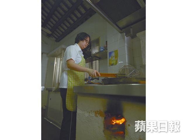 每次開爐總是如臨大敵。採訪當天,人客不多,只開了兩個爐灶。在底下加入木條、報紙,幾經辛苦才有火苗,但火勢稍弱時便要蹲下身來,再次補充木條、搧火。「我起爐大概要用半個鐘,有啲廚師熟手啲,都要十幾廿分鐘。」說來奇怪,灶旁只有約半米高的木條堆,不見柴枝蹤影,我問:「你哋𠵱家仲會上山執柴嗎?」「邊有咁多柴執啊!我哋通常都係訂木條,但怕唔環保,所以有時會用善信留低嘅棄木,但始終質素參差,火力燒得唔夠平均。」她說。為了應付年初一的齋宴,要預備足夠的木材及柴枝,其時木條堆會有一米高,十分壯觀。「我哋係瓦頂屋,過唔到消防條例,所以只能用傳統爐灶,唔係就要破壞間屋本身嘅設計。」她補充道。
