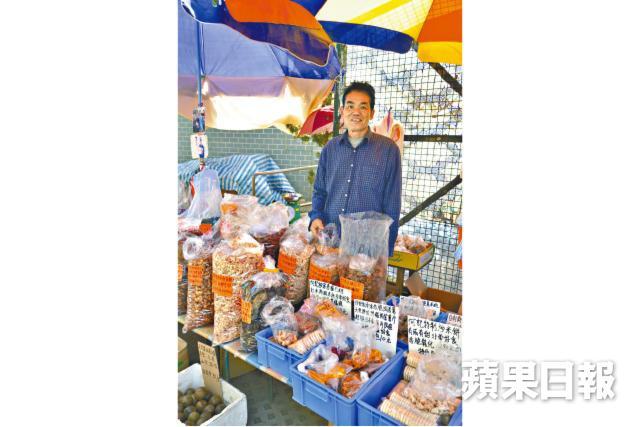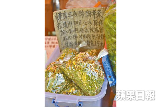 另一邊還有五六檔專賣土產的小檔攤,涼果、漬物、炒米餅、花生糖,一應俱全。有部份更是檔主們的自家製產品,好似擺賣了十幾年的何記,老闆就是原居民,閒時愛種花種菜,製作各種漬物,他的青梅就是自產自銷的代表作,咬一口,酸中帶甜,口感清脆。還有自曬的菜乾、龍眼肉、番薯乾等,都是心機之作。最可愛的是,大部份涼果都可供試食,而且檔主們都樂意解說,像「那種珍珠草用來沖茶能夠舒緩喉痛」類似的心得,不絕於耳,傳統買賣最寶貴的交流互動,在這裏又再找到。