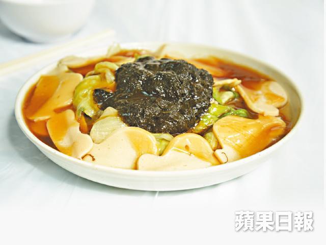 很心急想多試幾道菜吧!且慢!這裏的菜式只得一個份量——大碟,沒騙你,每碟足有四人份量,一般大約七十五元一碟,價錢倒算合理。聽長年幫襯的老主顧稱,十數年前,每碟才三四十元,雖然近來一直漲價,但幸好份量沒有縮水,味道水準也得以保持,故一直受愛戴。尤其假日或新春,齋客多得連室外也坐滿,熱鬧非常。買好票,找個位置坐下,菜就會送上。七彩素拼盤就是坊間的齋滷味,數一數,果真有七款之多。酸齋酸甜有致,咖喱齋惹味,素鴨腎有咬口,素雞有彈性……各有特色,各有味道,非常繽紛。不過最令人驚喜的,還是要數那道豉椒炒田螺。由蒟蒻假扮的素田螺,質感和形狀上,最為神似,雖然欠了田螺原有的鮮味,但與惹味豉椒同炒,確實幾可亂真,配上草菇、青椒、粟米芯,口感爽脆彈牙,很特別。