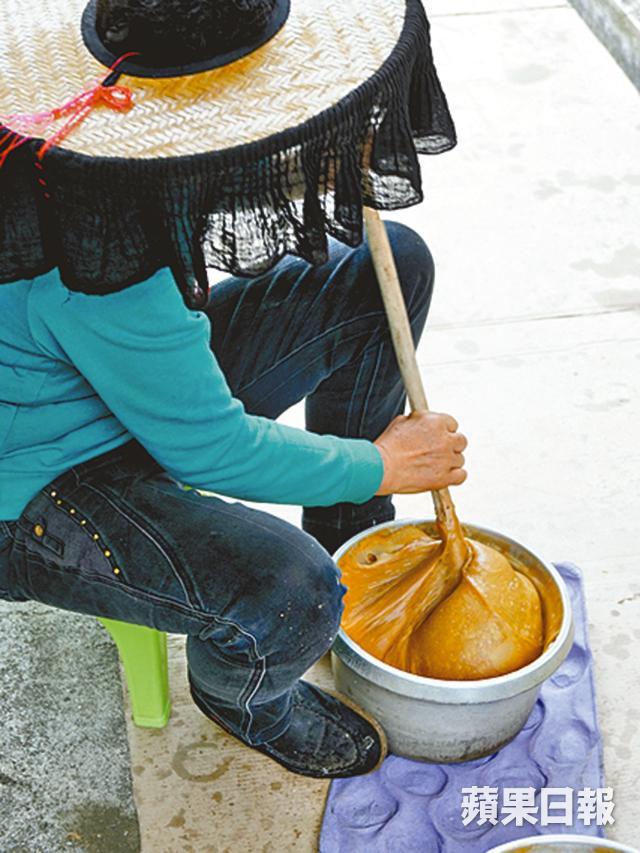 雖然李婆婆早已不再用石磨磨粉,但她說這幾十年來,做的年糕像被施了魔法一樣,令村內外的老友都在一年前預訂,因為她有好幾個不能說的秘技,「講咗你都唔明。」李婆婆笑笑說。我只能從袁姑娘的口中,才隱約知道這在清晨五時起以柴火蒸足十小時的年糕,會以山水來煮蔗糖,再反反覆覆搓揉起碼半天,為的就是煙靭彈牙的口感。