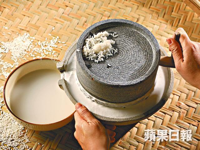 我們都知道的,坊間的糯米粉或許滲入了化學物質,所以那抹粉才白皚皚如細雪。蔡瀾找來中山「水鄉居」主人忠師傅,特別訂製傳統年糕,為了重拾嫲嫲做的年糕味道,其中一樣堅持的,就是一定要用石磨逐少逐少的將最好的糯米磨成粉漿再曬乾,成為自家製糯米粉,保證米香更重也確保半分化學物也不下。