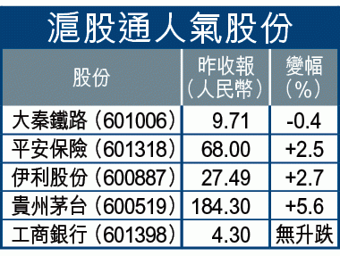 滬深兩市共流入一百零一億元人民幣,其中上海市場流入一百二十七億元人民幣,深圳市場流出二十六億元人民幣。滬港通成交方面,滬股通成交40.16億元人民幣,每日額度餘額一百一十億元人民幣,港股通成交5.94億元。