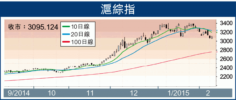 滬綜指有再考驗3000關之勢,昨日跌至3049反彈,但回升至五十日線(3125)回落,日線圖以陽燭回升至雙頂頸線3095阻力。