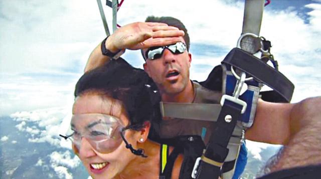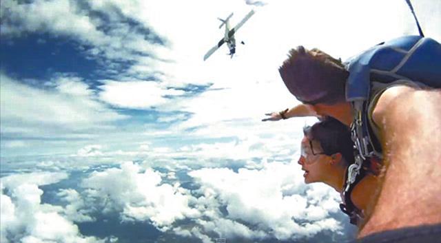 影片是去年十月,在泰國芭堤雅拍攝的,片段一開始,資深跳傘教練普爾曼(Forest Pullman)與一個女學員,從一萬三千呎上空跳下,當時女學員興奮得手舞足蹈和不斷尖叫,但是普爾曼卻一臉惶惑望向右邊。