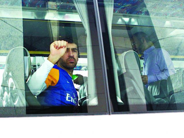 返回酒店小休四小時後,宇宙隊依然未有偷懶,照原定計劃進行午練。大軍出發前更應酒店要求,與高層們影大合照留念,而魯爾似乎亦養足精神,全程笑笑口。儘管今次出發,酒店門外只有三個球迷守候,也無損該位狂牛型男的心情,照舊nice爆,簽名合照來者不拒。不過,該前西班牙國腳甫登上球隊大巴,即掏出香蕉大口大口地吃,卻即時敲窗兼揮手,示意記者不要拍下他的食相。