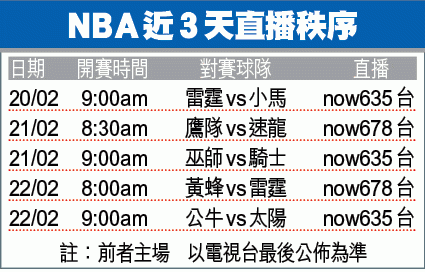至於A米的前紐約人隊友安東尼,周三宣佈將接受左膝手術,預計休養四至六個月,即餘下球季不能上陣。另一自由身老將阿倫(Ray Allen),盛傳已決定投騎士。